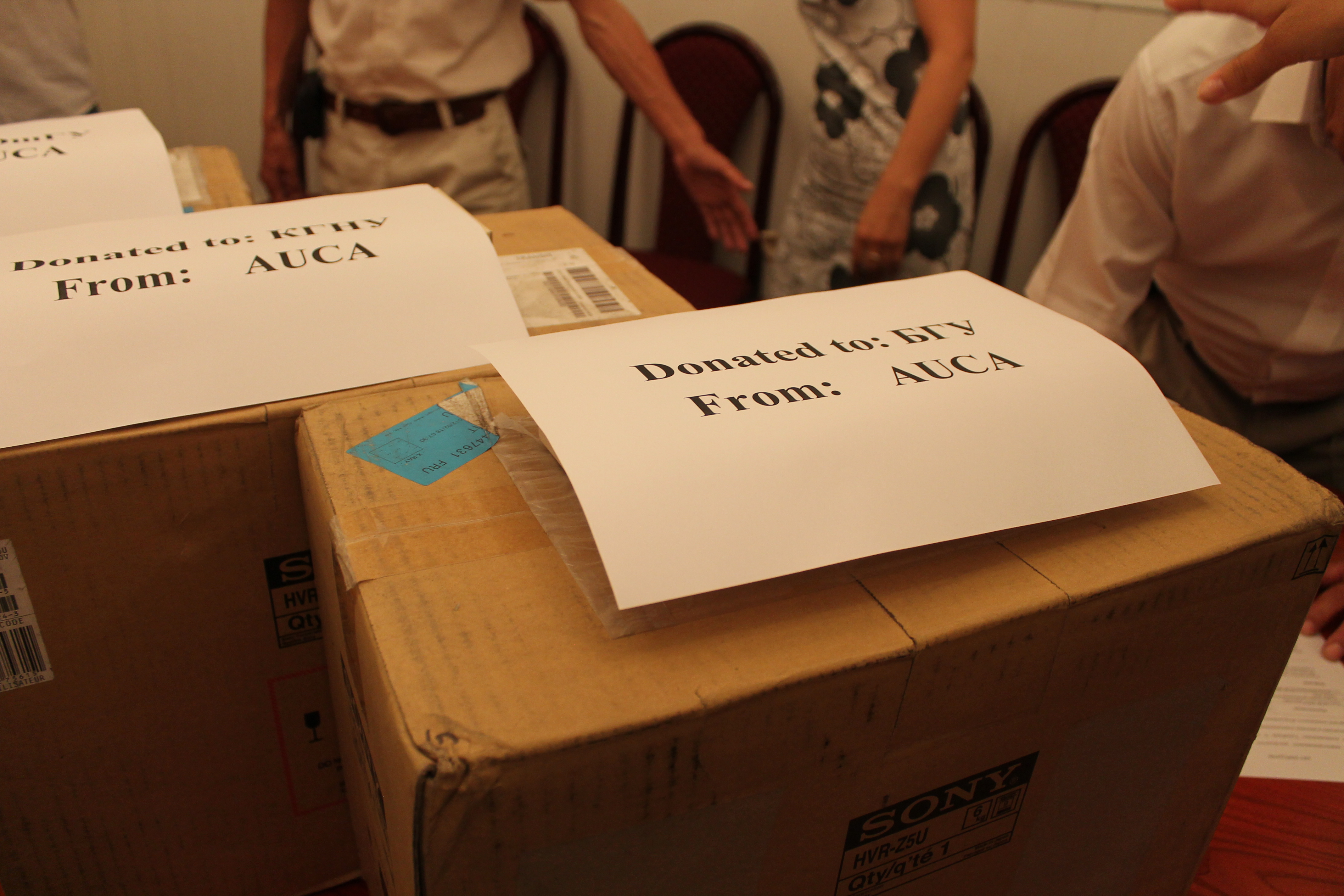 19 июня 2015 года АУЦА передал новые видеокамеры Sony HVR–Z5U и микрофоны факультетам журналистики КНУ им Ж. Баласагына, БГУ, ОШГУ, БатГУ и Института Искусств им. Б. Бейшеналиевой в целях повышения образования журналистики в регионах и в Кыргызстане в целом.