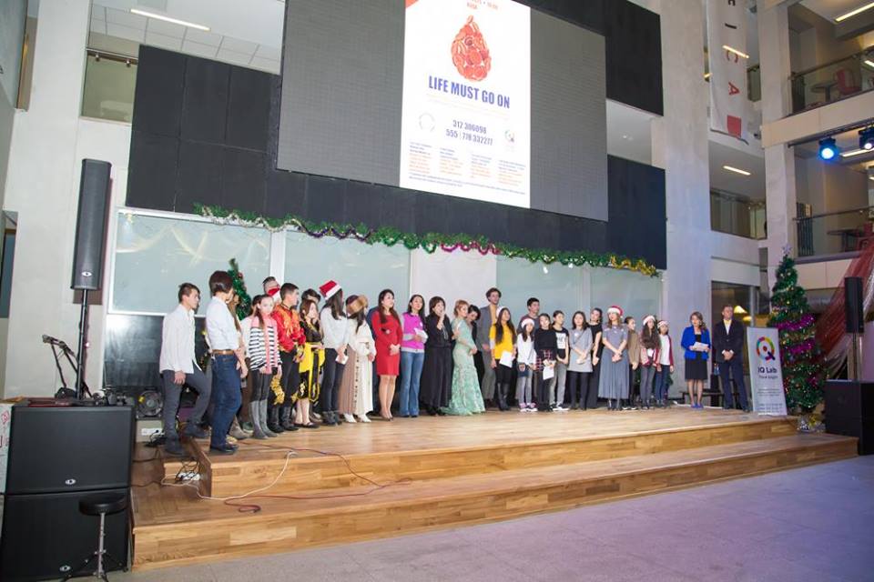 20 декабря 2015 года в Американском университете в Центральной Азии (АУЦА) состоялся благотворительный концерт «Life must go on», организованный IQ Lab. Мероприятие было направлено на то, чтобы собрать средства на покупку плазмы крови и лекарств для детей-пациентов Национального центра онкологии. По словам организаторов, в ходе концерта удалось собрать около 150 тысяч сомов.
