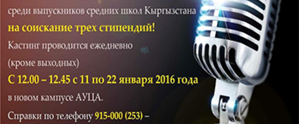 Американский университет в Центральной Азии объявляет о вокальном конкурсе "СТРИМ" среди школьников 11х классов на соискание трех стипендий на четырехгодичное обучение в АУЦА.