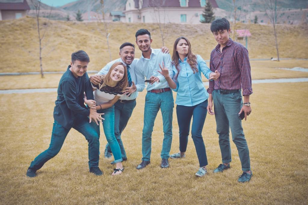 Отвечают почти хором, перебивая друг друга и смеясь. Молодые, классные, веселые, шумные, амбициозные, креативные. И в то же время умные, глубокие, думающие, качественные. Представим всю команду: это Адилет Дубаев (Адик), Сулайман Кулуев, Бахром Турсунов, Аэмилия Ыдырысова (Эми), Маржана Кадырова, Самат Дурусбеков, Азамат Уланов.