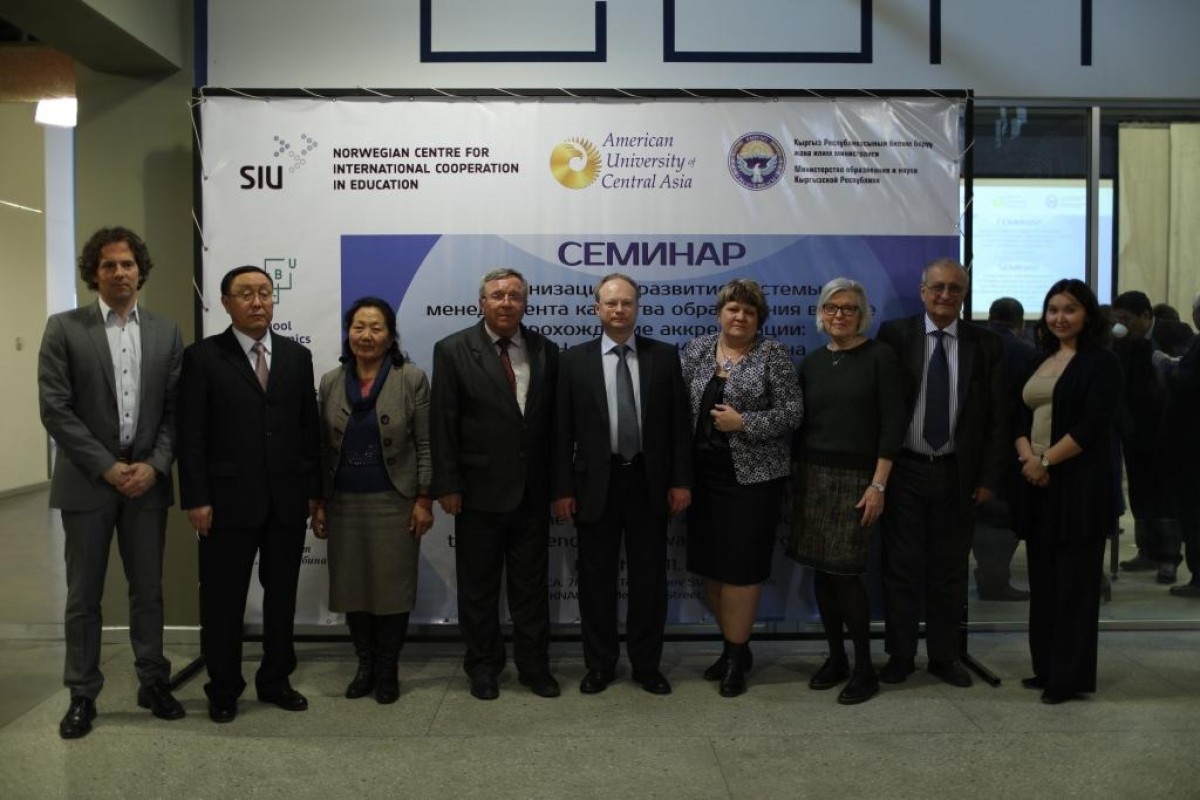 10 марта в АУЦА прошел семинар на тему «Организация и развитие системы менеждмента качества образования в вузе и прохождение аккредитации: опыт Норвегии и Кыргызстана». Спикерами выступили международные и местные специалисты в области оценки высшего образования. Семинар длился два дня: первый день семинара проходил в АУЦА, второй – в КНАУ им. Скрябина.