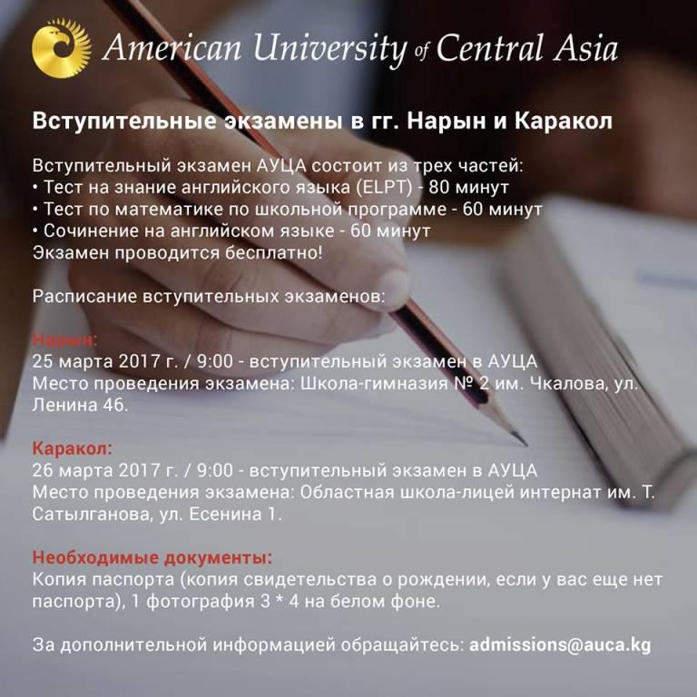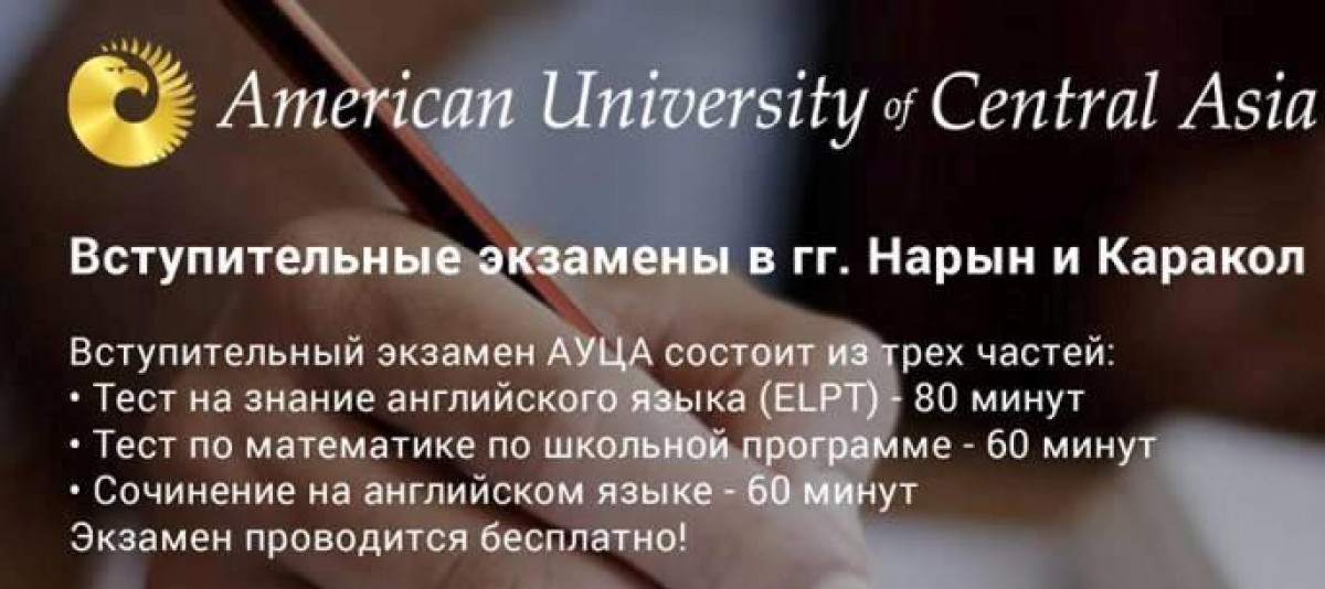 Американский университет в Центральной Азии объявляет о проведении выездных вступительных экзаменов на программу бакалавриат в городах Нарын и Каракол.