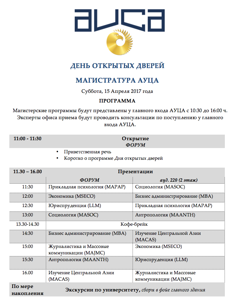 Магистратура в АУЦА!