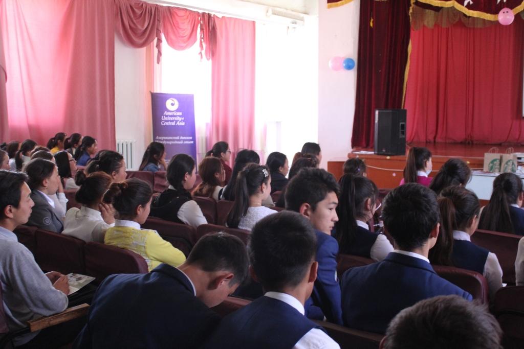21 мая 2017 года, студенты и сотрудники Американского университета в Центральной Азии (АУЦА) провели встречу со школьниками села Кочкор, Кочкорского района Нарынской области. Старшеклассники четырех школ получили возможность узнать об АУЦА, о стипендиальных программах и финансовой помощи. Также, студенты поделились своим опытом обучения заграницей через программы по обмену студентами.
