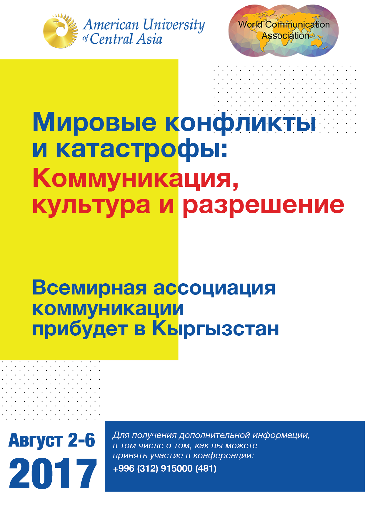 2-6 августа 2017 года в новом кампусе Американского университета в Центральной Азии пройдет международная конференция Международной ассоциации коммуникации. Со всего мира 100 ученых по вопросам коммуникации, журналистики и специалисты средств массовой информации соберутся вместе, чтобы затронуть тему «Мировые конфликты и катастрофы: коммуникация, культура и разрешение» в своих обсуждениях.