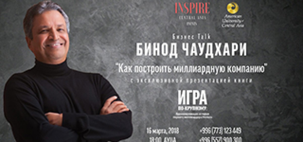 Inspire Central Asia совместно с АУЦА организовывают встречу с миллиардером списка Forbes Бинодом Чаудхари с лекцией "Как построить миллиардную компанию" 16 марта, 2018 в АУЦА!