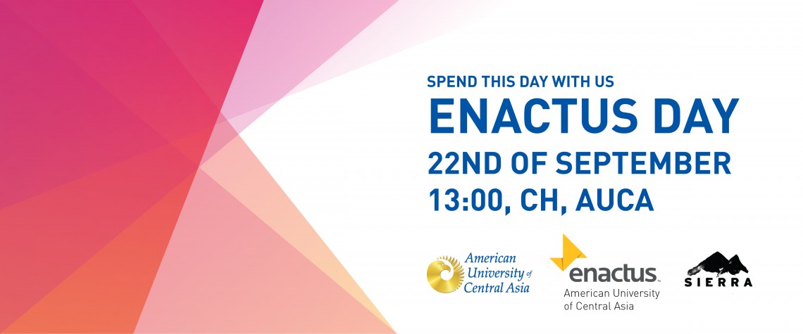 Enactus AUCA приглашает всех желающих на Enactus Day, который пройдет 22 сентября (суббота) в 13:00 в Американском университете в Центральной Азии (аудитория CH).