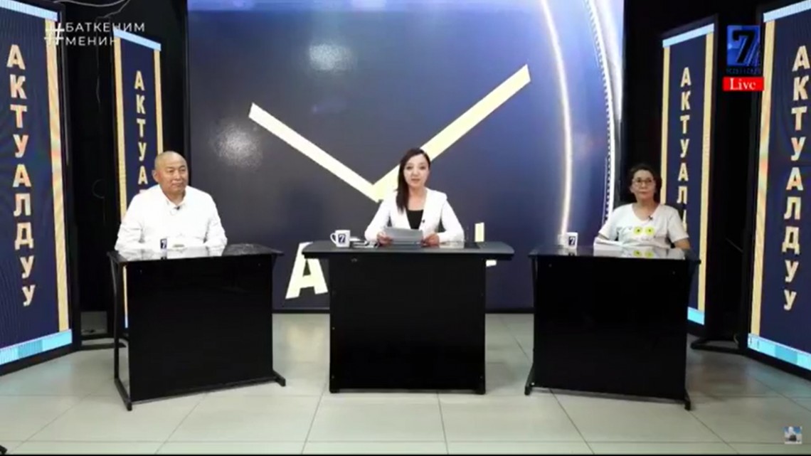 В программе «Актуальное» 7 телеканала декан факультета «Геоэкология, доктор естественных наук Жеенбек Куленбеков и декан факультета «Антропология, технология и международное развитие», профессор, доктор исторических наук Чолпон Турдалиева.