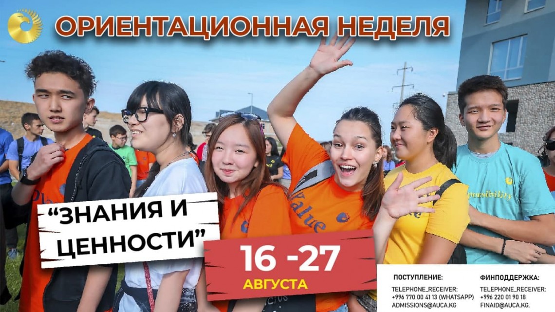 16 августа начнётся одно из самых важных событий в жизни АУЦА – университет встретит своих первокурсников. Ориентационная неделя – это двухнедельная программа перед началом первого семестра, в этом году она пройдет с 16 по 27 августа под девизом «Знания и ценности».