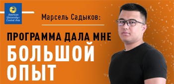 Одна из целей Марселя Садыкова при поступлении в АУЦА была возможность участвовать в программе обмена студентов в Америке. Один семестр в Бард-колледже в Нью-Йорке помог ему улучшить навыки в академической части, а также получить опыт студенческой жизни в Америке. В будущем Марсель планирует поступить на магистратуру именно в Нью-Йорке, так как обучение в АУЦА дало ему всевозможные навыки достижения своих целей.