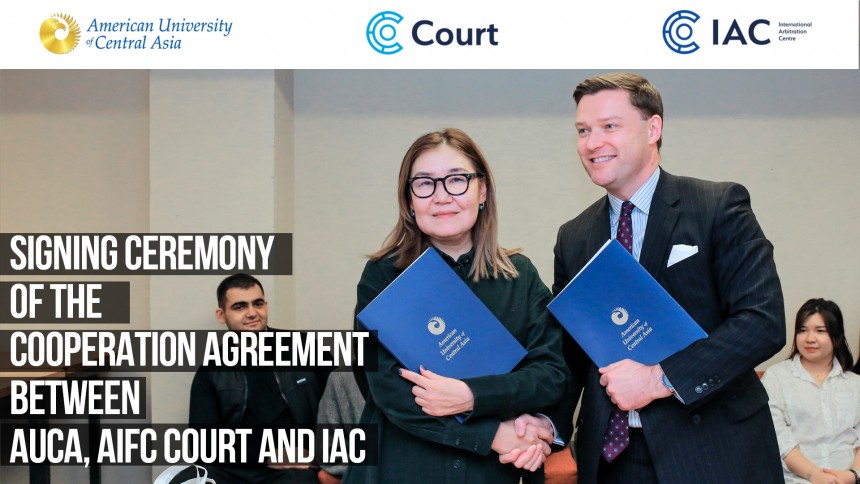 28 октября было важным днём для всего сообщества АУЦА. В этот день Американский университет Центральной Азии (АУЦА), Суд Международного финансового центра Астаны (МФЦА) и Международный арбитражный центр (МАЦ) подписали Соглашение о взаимопонимании, которое расширяет сотрудничество между организациями и также открывает для студентов возможность прохождения стажировки в Суде МФЦА и МАЦ с возможностью дальнейшего трудоустройства в компаниях-резидентах МФЦА.