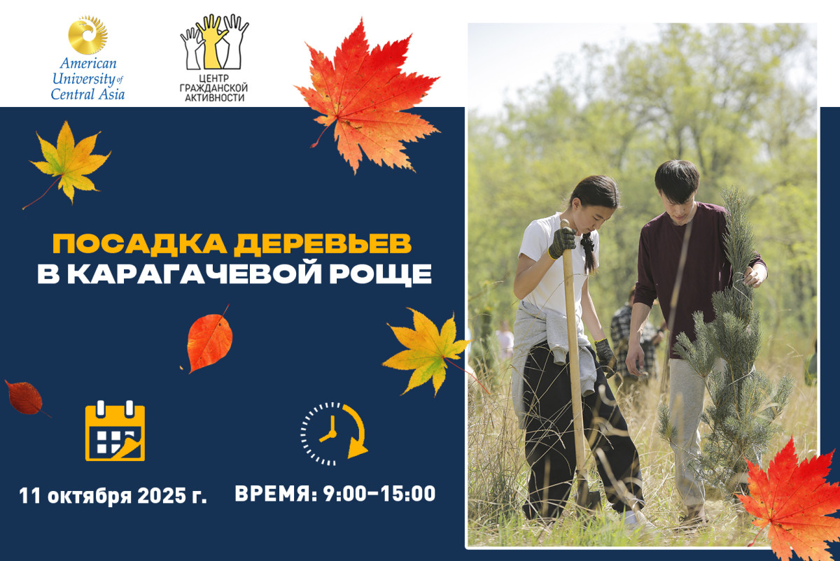 Присоединяйтесь к нам на традиционном мероприятии по посадке деревьев в Карагачёвой роще, организованном Центром гражданской активности (CCE) и программой устойчивого развития АУЦА совместно с Франко-Кыргызской ассоциацией экотуризма (AFKE).